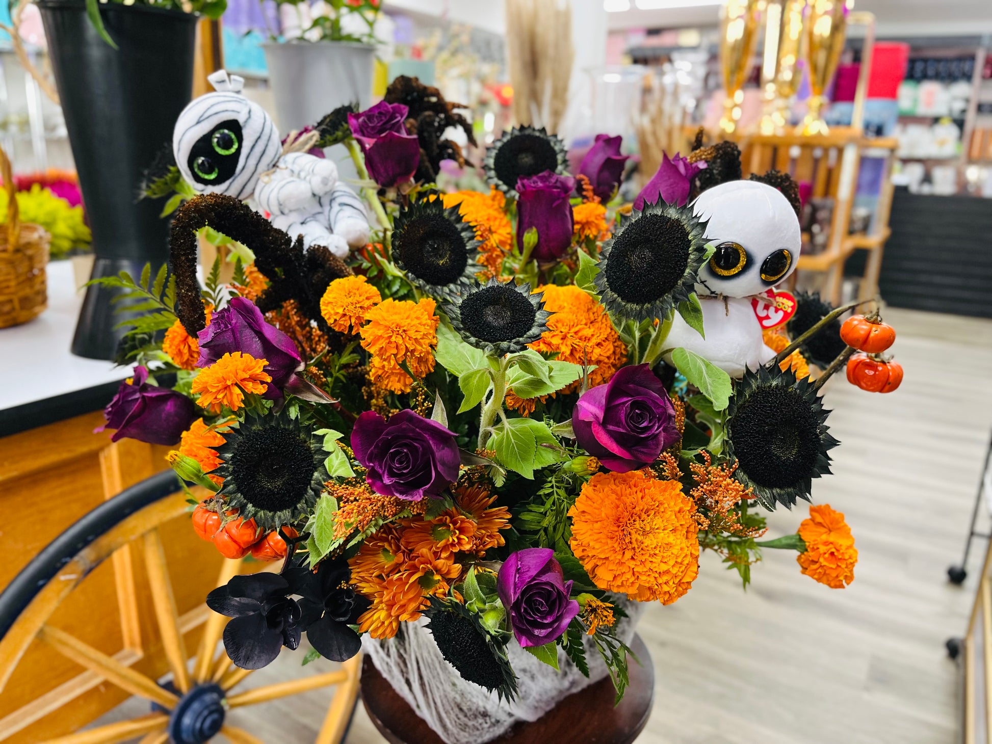 Explore the enchanting beauty of our Spooky Roads floral arrangement. With its unique combination of captivating flowers, this arrangement is sure to add a touch of mystery and allure to any space. Perfect for adding a hauntingly beautiful touch to any occasion.