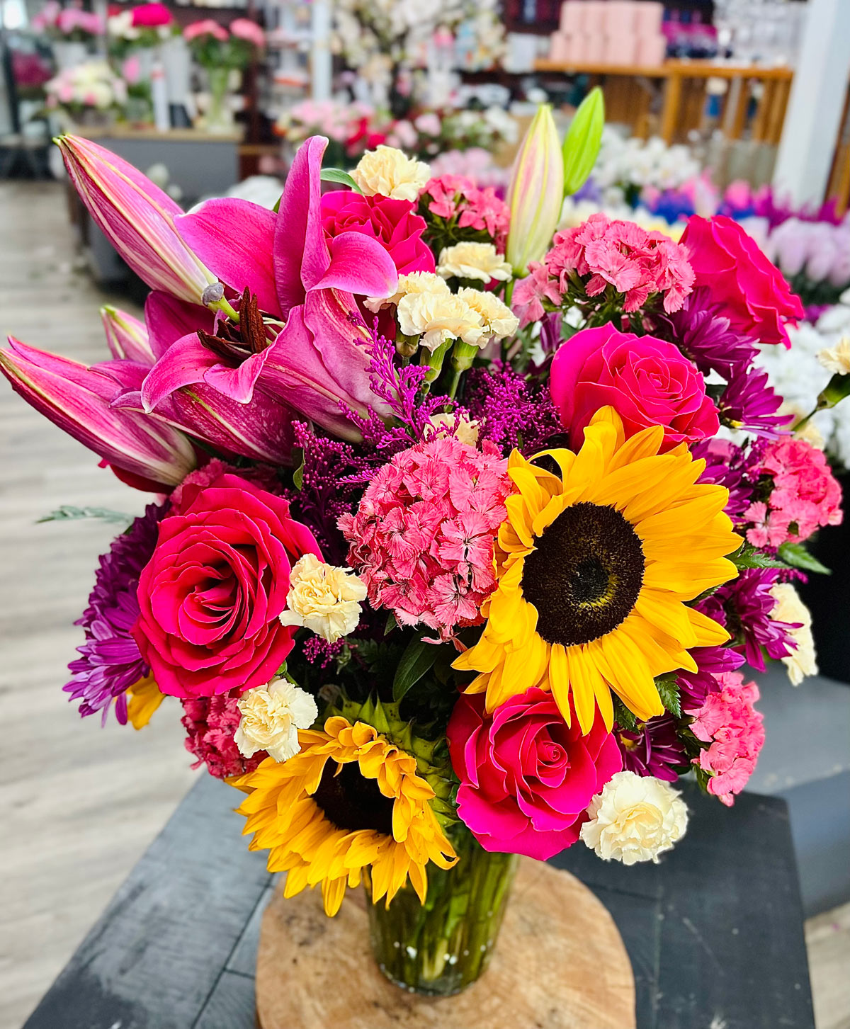 In some instances, our photo may represent an overall theme or look and include a one-of-a-kind vase which cannot be exactly replicated.