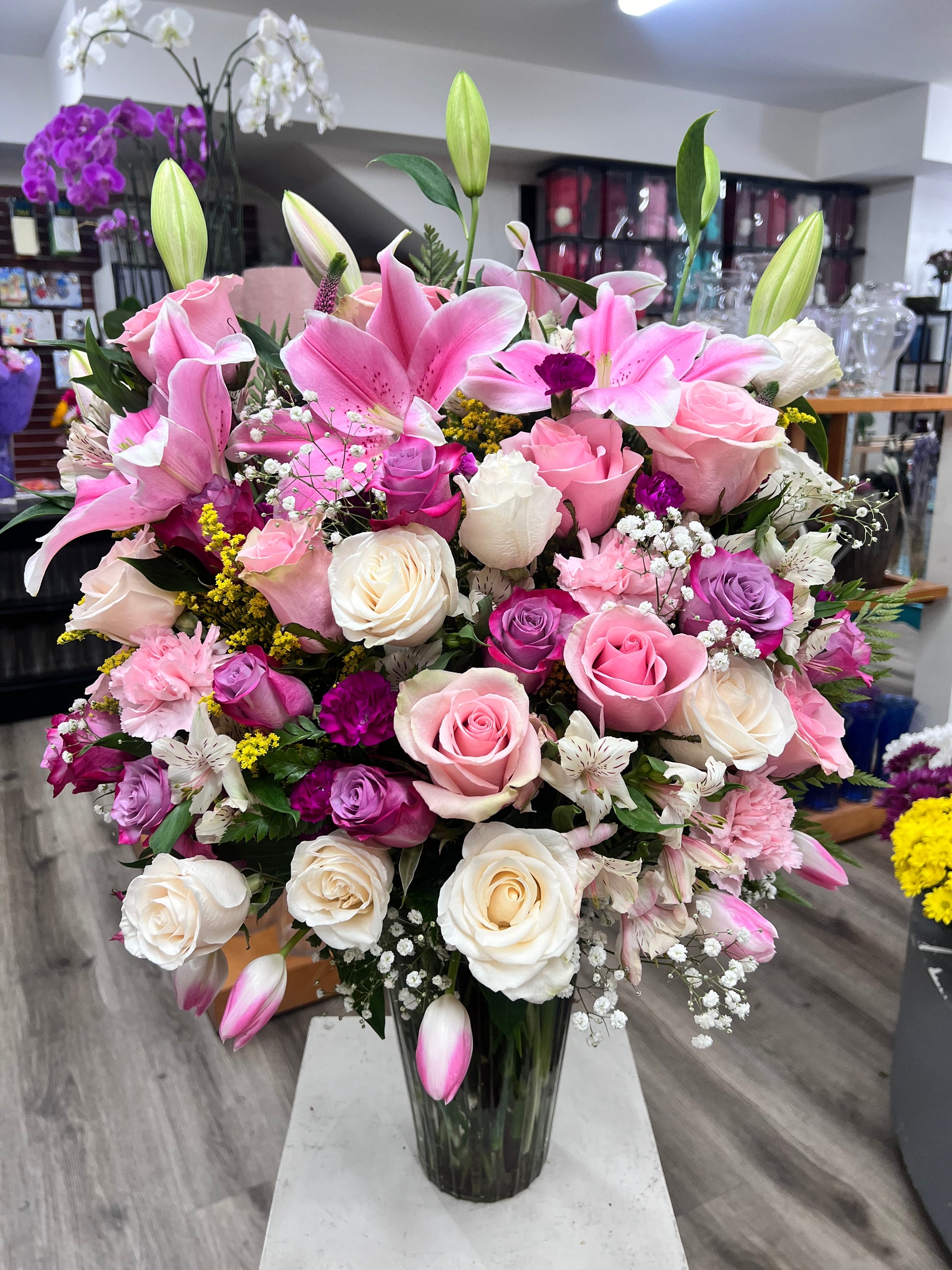 Although the actual bouquet may not precisely match the photo, its temperament will. Occasionally, substitutions of flowers and/or containers happen due to weather, seasonality and market conditions which may affect availability. If this is the case with the gift you've selected, we will ensure that the style, theme and color scheme of your arrangement is preserved and will only substitute items of equal value or higher value.